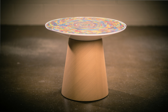 Emphasizing that aesthetics reinforce productivity and employee well being, Turnstone teamed up with NoPattern’s Chuck Anderson for a colorful, one-of-a-kind functional office furniture piece that emphasizes outside-the-box thinking. The Campfire Paper Table captures Anderson’s frenetic style.