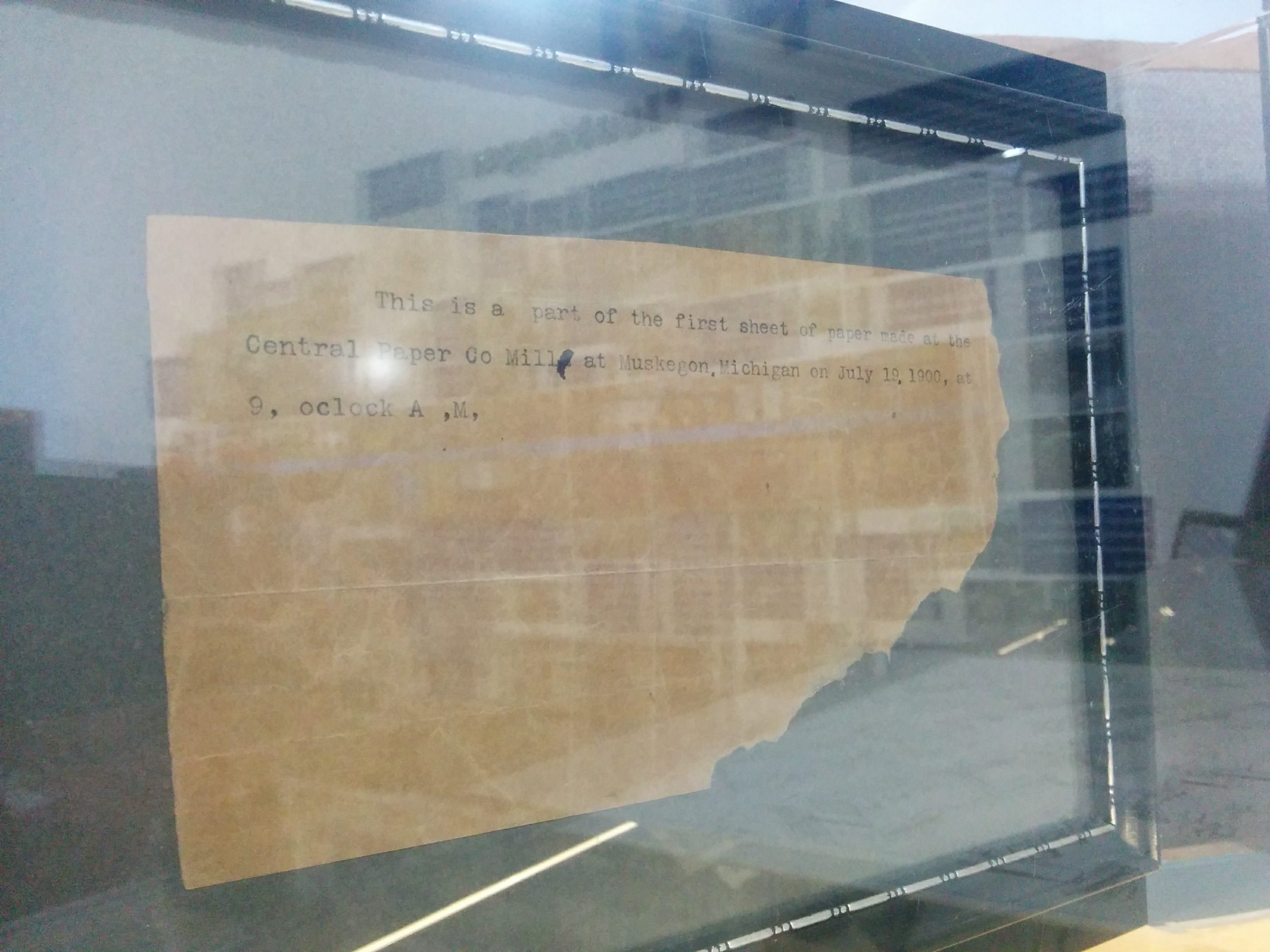 Now, 117 years after Green entered the Central Paper Company at 2400 Lakeshore Dr., the man is gone, but his name remains in cursive letters, joining a roster of 28 of his fellow workers on an employee time sheet from April 14, 1900 that hangs in the Muskegon Heritage Museum. From this piece of paper, we can glimpse a world simultaneously similar and dramatically different from our own; we can, from afar, peek into the day-to-day lives of people populating a city where horse-drawn carriages and electric streetcars navigated Muskegon’s roads, carrying individuals to a bustling downtown filled with places like the ornate Occidental Hotel and Wasserman’s Flower Shop (which is still here and thriving).