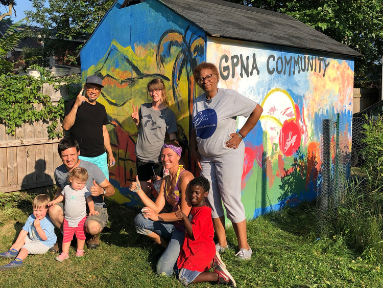 Stout shares that projects chosen for funding must be intentionally inclusive and bring neighbors together to build lasting relationships. Consider the West Leonard Mural project. NMF awarded funds for pre-mural neighborhood gatherings. Residents came together, got to know each other, and had their photos taken. The finished mural features the faces of these actual Westside residents.
