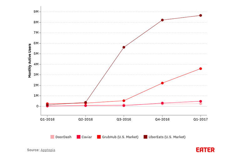 Grand Rapids has already large startups Seamless and GrubHub present, but Vox Media’s EATER reports UberEATS dominance of the delivery service market in other cities as overwhelming. Quarter over quarter, it shows users flocking to UberEATS over all other apps, and Grand Rapids may soon follow suit.