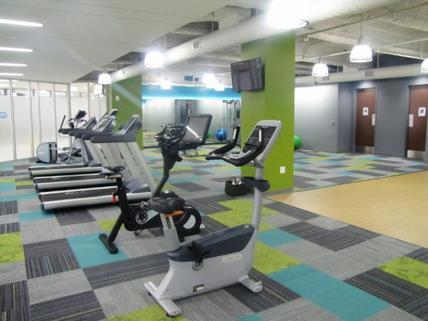 Tenants have full access to the high-tech conference/training room, which features video conferencing capabilities. Maue says having the fitness center with its workout equipment and showers, plus the Panera Bread, creates a health-focused environment. The fitness center will soon add a personal trainer, and already offers fitness classes on flexible schedules to meet tenant needs.