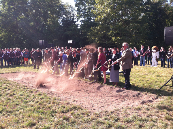 With a dozen shovels in the ground, Grand Rapids’ Aquinas College faculty, donors, and students broke ground last week for the final phase of its $14 million athletic complex while nearly 500 student athletes looked on. The Alksnis Athletics & Recreation Building at 1580 Fulton St. SE will complete the sports and recreation project begun with the opening of the $7 million Sturrus Sports & Fitness Center, which opened in November 2010.