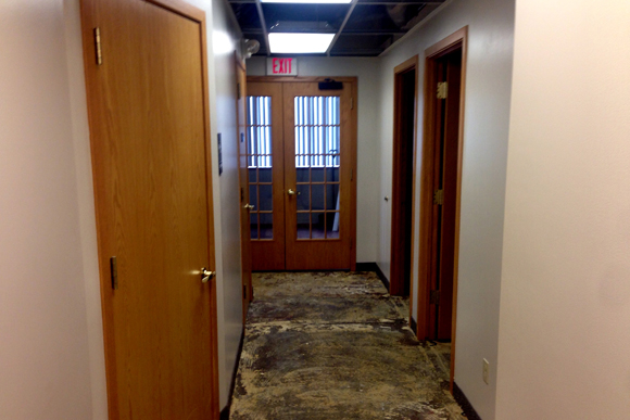 But also inside are myriad small rooms from the former physical therapy business that recently occupied the 4,000-square-foot space. The walls will come down this week with Laura’s help. She quit her job as a dental hygienist May 1 to devote her time to the demolition.