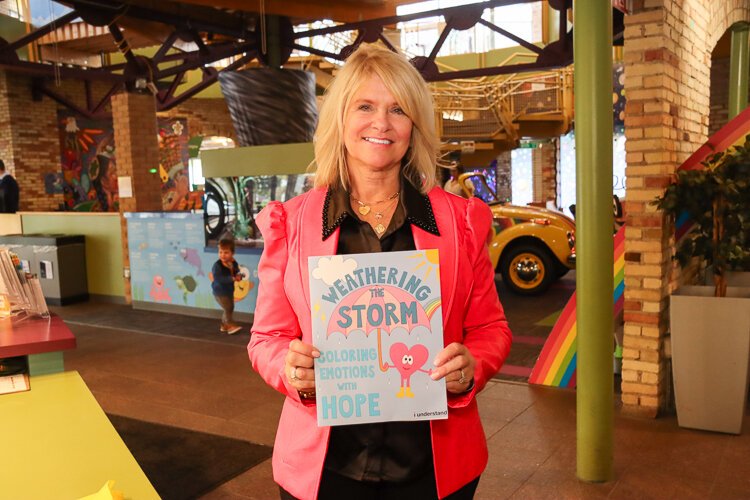 Vonnie Woodrick, founder of i understand, holds a coloring book designed to help children process emotions.