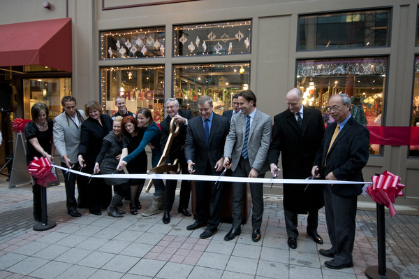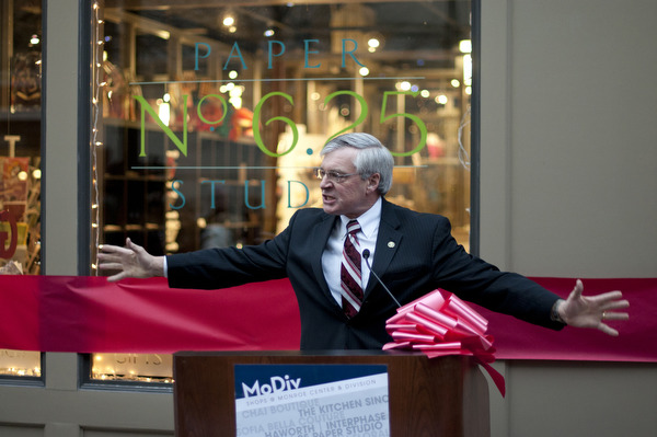 In celebration of nearly filling 8,000 square feet of prime downtown Grand Rapids real estate with new and established retail businesses, the shop owners and developers of Shops @ Monroe Center and Division, or MoDiv, cut a block-long ribbon Monday night to mark the official opening of the retail incubator and the grand opening of the Haworth Interphase Showroom.