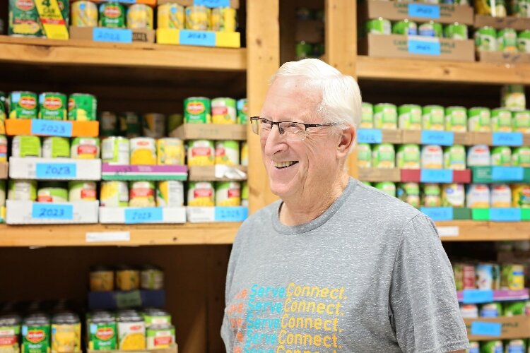 • Russ Harmsen, a retired math teacher, who helps keep the food pantry inventory accurate and shops for needed items.