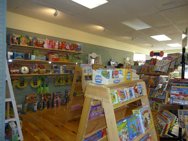 Toys include action figures of knights and dragons, princes, princesses and animals, wood building blocks, dress-up dolls, and Klutz “how-to” craft kits for making balloon animals, paper airplanes and jewelry.