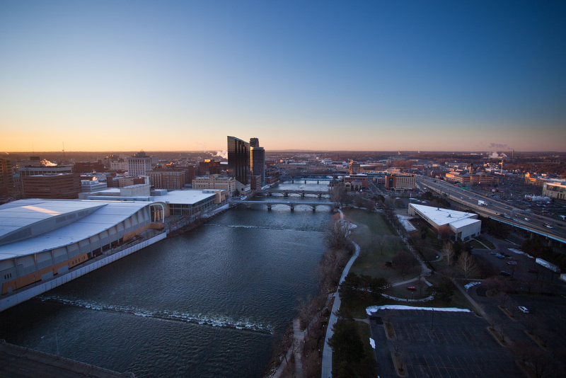 Every once and a while when I’m on assignment I see something really cool that is not a part of what I’m there to shoot. While working on a project on the 18th floor of the Varnum building downtown, very early in the morning I came across this scene, and had to shoot and share it. The river is an incredible feature of our town, that simultaneously divides and unites us.