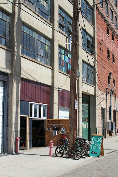 The TSF Westside location in the warehouse district, just south of The Rapid, provides a place where not only can classes take place, but people who are curious about bike culture can drop in and converse in a relaxed atmosphere, building up community within TSF’s three-walled space with its disappearing fourth wall door that swings open. (This fourth door when open creates a clever outdoor showroom for the bikes that they have repaired or built and are now for sale on the sidewalk.)