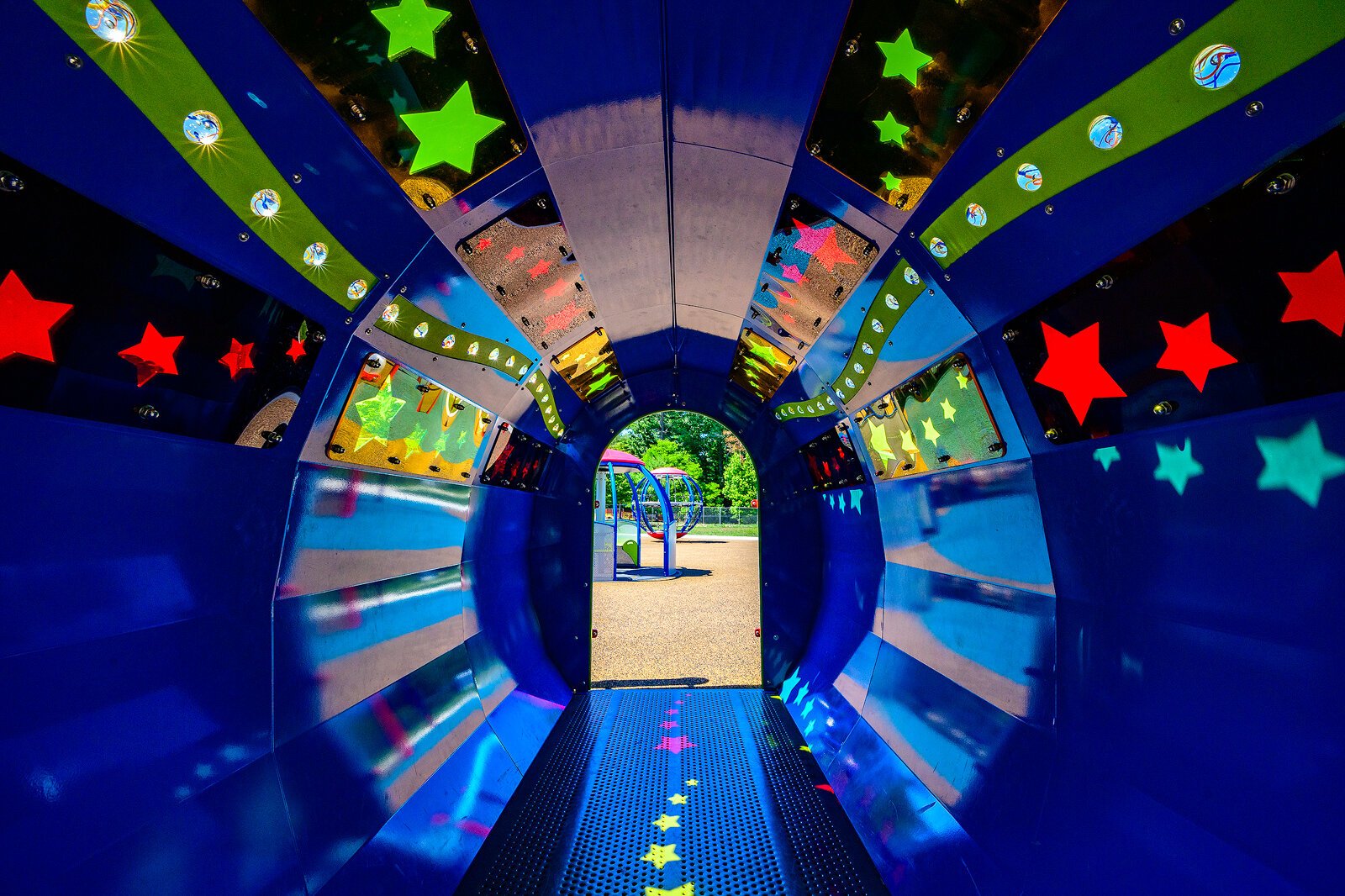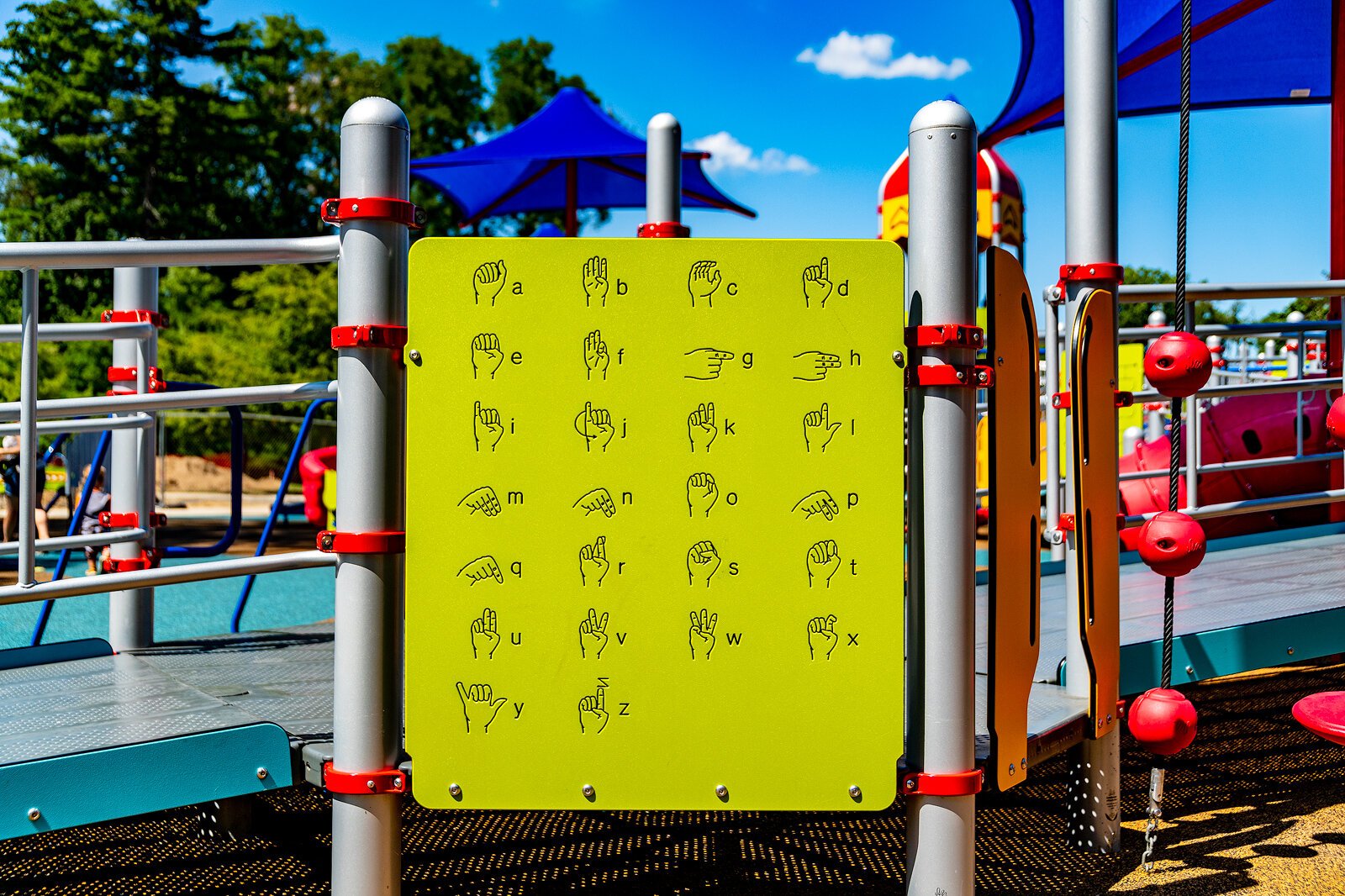 The design allows children of different abilities to play together with platforms and play areas that are easily accessible by wheelchair. Another project in DeWitt, the Miracle League Field has replaced the rough surfaces of a traditional baseball diamond with a rubberized surface that makes it easier for athletes using wheelchairs and walkers to play.