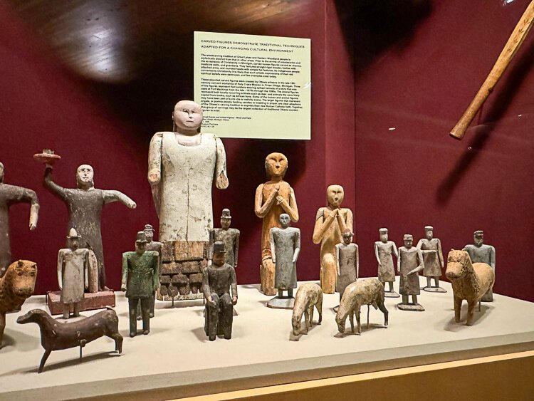 Anishinabek-carved figures from Grand Rapids Public Museum’s current display Anishinabek: The People of This Place that closes in January.