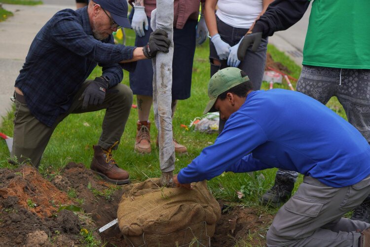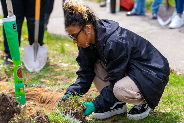 Volunteers plant tree at ArborFest 2024, photo by Evie Dzomba.