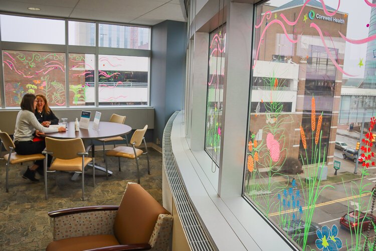 Corewell Health’s Lemmen-Holton Cancer Pavilion is serving as a temporary canvas for three collaborative art projects. Last fall, students from the Kendall College of Art and Design of Ferris State University (KCAD) partnered with Corewell Health to bring the healing power of art to the Cancer Pavilion.