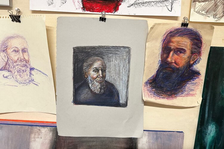 Kristen Schwabauer, an art student in her final semester, participated in the project. As part of her assignment, she took 5-10 minutes to sketch a person receiving treatment. No photography was allowed. Later, Schwabauer completed the portrait off-site, taking inspiration from work by Rembrandt and other classic artists.