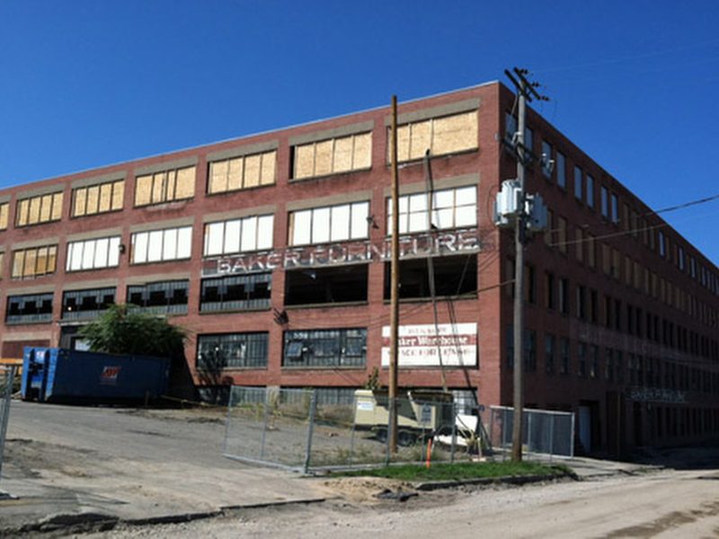 Work on the new Baker Lofts begins in the midst of the new Urban Market on Ionia South of Wealthy. The apartments are a renovation of the near century old Baker and Century Furniture Company building, utilizing MSHDA low income housing tax credits and historic preservation tax credits.