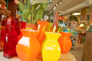 Shoppers who love flowers, gardens, and tableware won’t want to miss a trip to Mulick Floral. Located in the former Brassworks Building, this store is jam-packed with artfully arranged displays of gift items that range from sedate to whimsical. Be prepared to spend some time here; there’s much to see and touch and smell. And be sure to look up. Many wreaths and larger items are displayed near, or hanging from, the rafters.