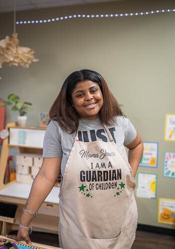 Small, who has her CDA and is going to school to earn her Associate’s degree in Early Education, knows her new position and salary as site director may be temporary. At 28, she’s been working in her mother’s child care centers for half her life. Coming into the office, she’s now learning the business side of child care but still makes time to check in on the center’s educators throughout her day.