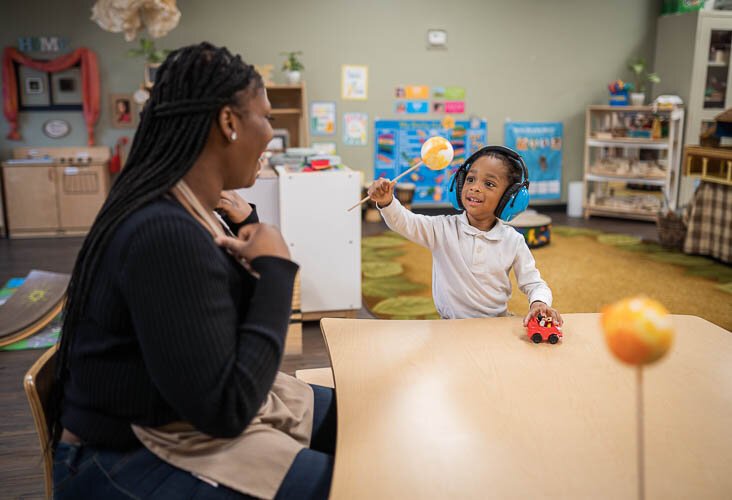 “Our facility is an educational facility for early learners,” says Hickey. “These are classrooms. We have a curriculum, and our teachers are doing lesson plans.” Yet, too often, child care centers like VOSS are viewed as simply daycare, she says, and teachers like Wasson as babysitters.