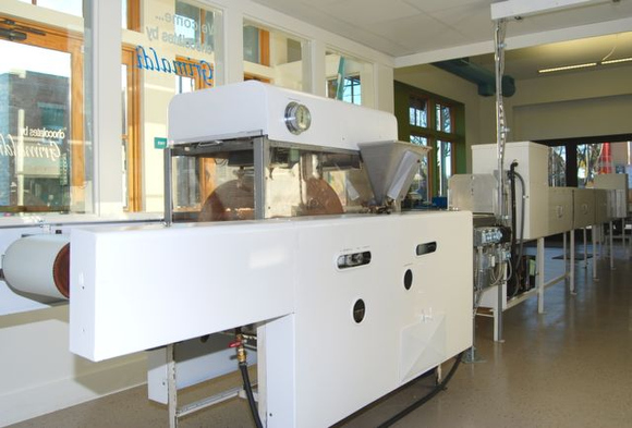 “We make our Chips ‘N Chocolate using Better Made chips made in the Detroit area,” Laham says, adding that she uses as many Michigan products as she can. “We tried several different chips, but they had too much grease. Better Made had the least amount of grease and the right amount of salt. The chips go through the enrober (to coat them equally on all sides), then 20 feet of cooling tunnels, so the chocolate and the chips stay crispy.”