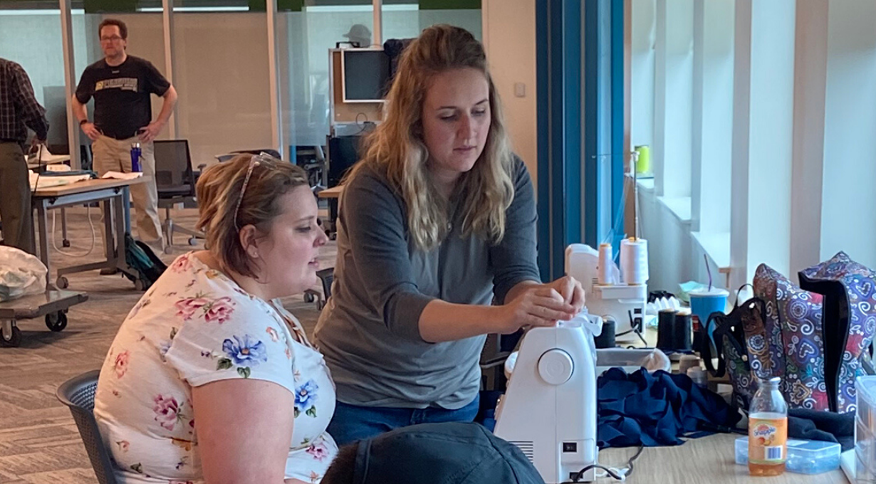 “I love teaching others,” says vanMelle, who became involved with the project after her brother-in-law, a lab technician in GVSU’s Kennedy Hall of Engineering, told her about the initiative and asked if she wanted to help. “During our first meeting, there were a few raised brows when I said I could teach anyone to sew the masks,” she says. “But I did indeed teach people who had never touched a sewing machine.”
