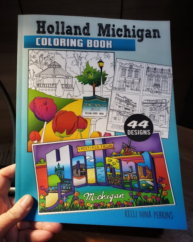 - Publish the “Holland Michigan Coloring Book” (print or download) capturing all our favorite places.