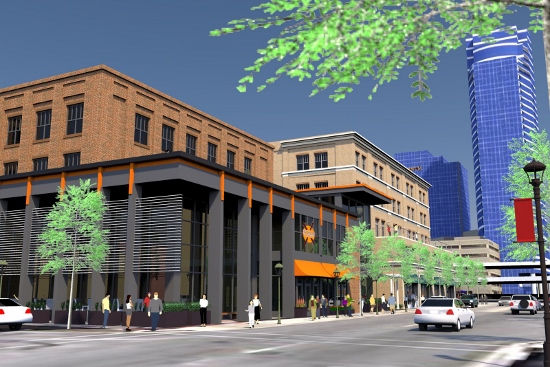 Now Orion Construction, developers of Arena Place and other recent projects popping up around the city, has partnered with Greg Gilmore and is proposing a 20-story residential tower connected to a four-story addition to The BOB.