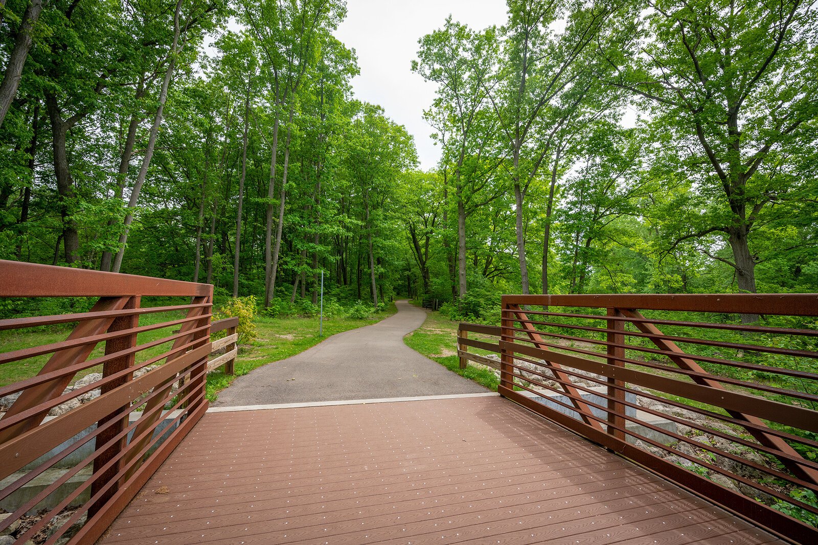 One of the first MNRTF projects in Flint, funded little more than a decade after the fund was established, helped solidify what is now one of the city’s key greenways: the Flint River Trail. Two grants, issued in 1987 and 1988 and totaling $775,000, allowed the city to construct asphalt and boardwalk trails, observation decks, parking, and fishing piers along the shoreline on both sides of the river. Organizers saw the improvements as a way to help connect downtown Flint to Genesee County Parks facilities just beyond the city’s borders, including Bluebell Beach and Crossroads Village.