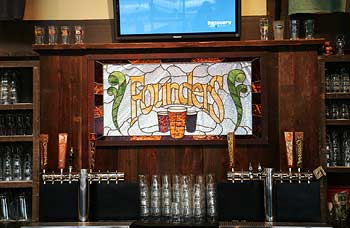 Now completed, and opened for business on November 17, 2007, Founder’s new location is a non-smoking facility complete with an outside deck that’s actually larger than the former taproom at North Monroe. With outdoor heaters and two giant garage-style glass doors opening to the deck, the covered patio is sure to be a popular spot no matter what the season.