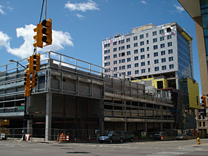 Deborah Johnson WoodAfter years of anticipation and arm wrestling for financial banking, The Gallery Apartments in downtown Grand Rapids will debut in June at the 6th Annual Parade of Downtown Living. Fifty-six luxury apartments occupy floors 6 through 12 of The Gallery on Fulton, 2 West Fulton St. Developers hope to have the entire 12th floor ready by tour time, says Nick Koster, vice president of operations for CWD Real Estate Investment, one of the developer partners. “We will have two model units ready on the 12th floor, but we’re hoping that the whole floor will be complete with several apartments staged,” Koster says. The apartments sit atop the future home of the Urban Institute of Contemporary Arts (UICA) which will occupy 40,000 square feet on levels one through five. The building fronts along S. Division Avenue, where another 2,700 square feet of retail space is still available. Studios and one-, two- and three-bedroom apartments make up the mix of residences. The units on the north side of the building have floor-to-ceiling windows; all of the sixth floor units share a band of glass that wraps the building, giving each of those apartments nearly floor-to-ceiling windows. The building will be LEED certified.”From a quality standpoint, the apartments are much more like The Fitzgerald than anything we’ve done,” Koster says. “But the styling is very contemporary and a different look than [developments] we’ve done in the past. All of the apartments have stainless steel appliances, granite countertops and the master baths have tile showers with glass doors.”There will also be a fitness room, laundry facilities in each apartment, and a rooftop deck for all residents, featuring a partially enclosed area with a concrete bar and flat screen television. Leases range from $750 to $2,500 a month.The Parade of Downtown Living runs from June 11-13.Source: Nick Koster, CWD Real Estate Investment; 2010 Grand Rapids Parade of Downtown Living Facebook pageRelated ArticlesLot at Division and Fulton may provide temporary surface parking$34M Gallery on Fulton sets stage for two unique theaters, 56 luxury apartmentsDeborah Johnson Wood is development news editor for Rapid Growth Media. She can be contacted at deborah@rapidgrowthmedia.com. Development News tips can be sent to info@rapidgrowthmedia.com.