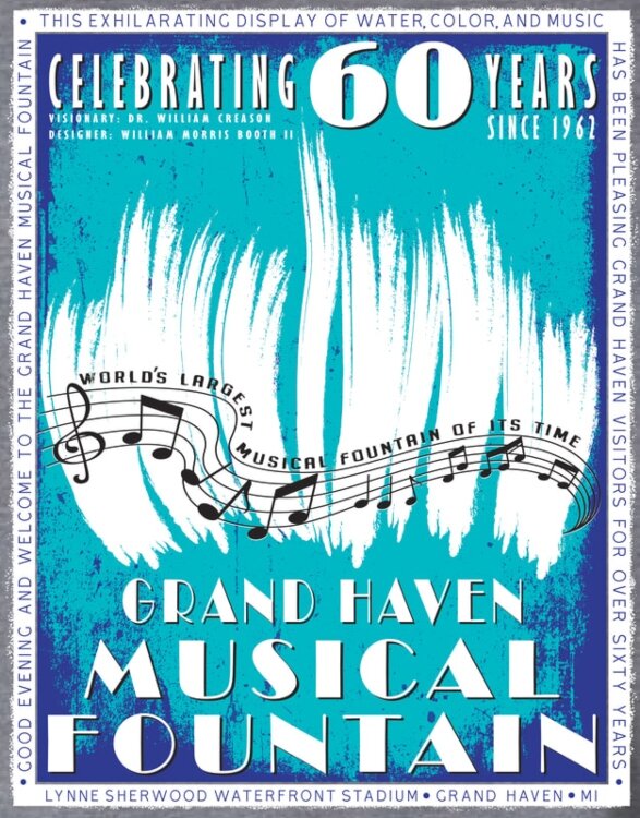 The fountain is the brainchild of Dr. William “Bill” Creason, a former Grand Haven mayor. The idea germinated when Creason was serving in the Navy in the early 1950s and he went to a Berlin nightclub that had a small fountain and an organ along a 12-foot stage. When Creason returned home, he wanted something similar for Grand Haven, only larger and more dramatic. So, instead of a 12-foot fountain, Grand Haven’s was 200 feet long.