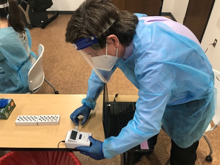 GRCC basketball players, coaches, and training staff receive weekly COVID-19 antigen tests through a partnership with the Ferris College of Pharmacy. Testing is expected to continue through the end of the season.