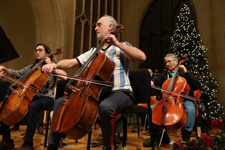 HSO musicians rehearse for the holiday concert at Dimnent Chapel. (J.R. Valderas)