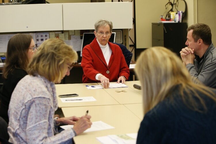 Kay Walvoord leads an HSO staff meeting. (J.R. Valderas)