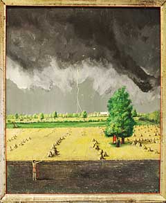 Charles Hill, curator for the National Gallery of Canada, organized an exhibition of Kurelek’s paintings in 1992 to mark the centenary arrival of the first Ukrainians in Canada. “The turning point in Kurelek’s life was his religious awakening and entry into the Roman Catholic Church in 1957,” Hill says. “After that, his art began to carry the Christian message and warn humanity of ‘the dark night toward which the present materialism is taking us.’”