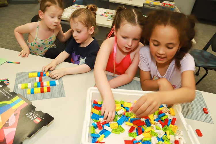 Shelley Roossien, Accessibility and Inclusion Specialist at KDL, leads children through a building exercise.