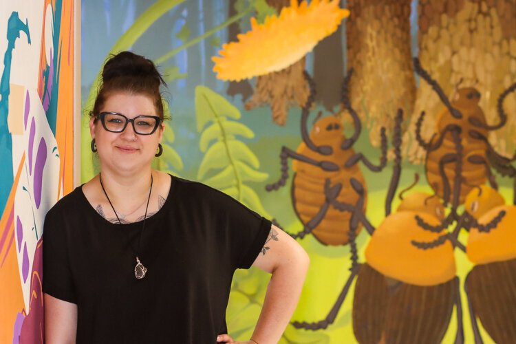 DuMond, who graduated from KCAD with a bachelor of fine arts degree in Illustration in 2005 and a master of fine arts in 2010, began their mural work over five years ago. Their journey into mural art started with a project for their yoga studio, and through referrals, they have expanded their portfolio to include about 10 murals around West Michigan.