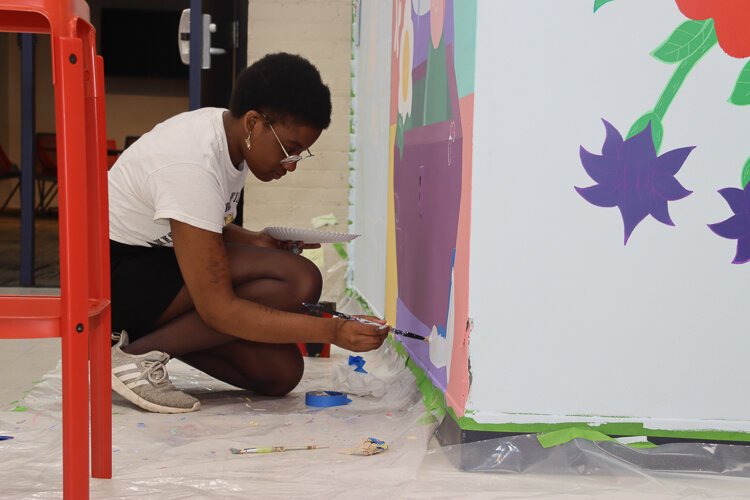 Alyssa Macek works on her mural.