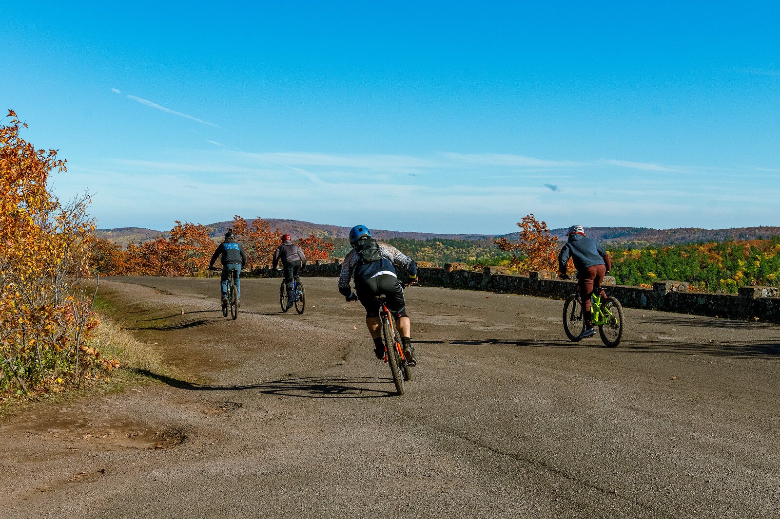 Cyclists on Brockway Mountain Drive. Photo by Doug Coombe.