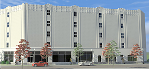 The behemoth of a building on the corner of Lake Dr. SE and Robinson Road in Grand Rapids’ Eastown could soon lose its dreary facade on the first floor and be transformed back to its original terra cotta beauty. The Kingsley Building, also known as the former Zondervan warehouse and the former Kent Record Management building, had its original plate glaze terra cotta and its storefront windows covered 57 years when it became Zondervan’s storage facility. But now Bazzani Associates has been hired to do the heavy lifting and uncover the art deco building’s beauty and restore it as 14,000-square-feet of new retail space along both Lake Drive and Robinson Road. “The majority of people I talk to about it say ‘what five story building?'” says Baird Hawkins, a sales associate for Bazzani. “It’s just a blond wall that people have been driving past for half a century.”The original storefront windows are there, they’re just hidden,” Hawkins says. “Zondervan put the stuff on the facade and a 14-foot wall on the interior but there are blinds still hanging on the inside of some of the windows, it’s just boxed in and has been sitting for 57 years now.”Hawkins says the building was built in 1927 by noted architect George S. Kingsley who was known for his stylish warehouses. The Kingsley Building is a concrete structure designed to hold 400 pounds per square foot for the furniture industry. That has made the building difficult to sell, thus prompting the renovation of the first floor, instead. The retail bays will be ready this fall. Hawkins says there are some prospective tenants, but he declined to give details.Source: Baird Hawkins, Bazzani AssociatesWriter: Deborah Johnson Wood, Development News Editor