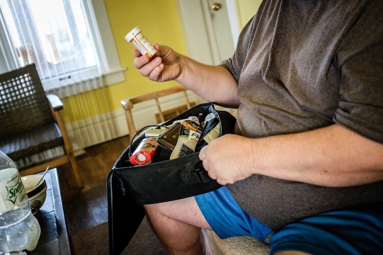 Pat ApPaul – A Lemonade Stand of Muskegon member sorts through their collection of medication.