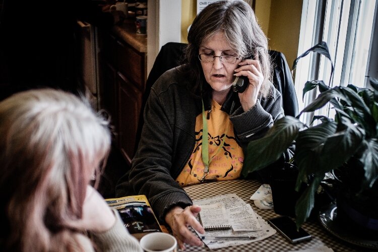 A Lemonade Stand member helps a friend get connected to various housing options. Many Stand members have had experience with homelessness, often due to the cost of housing and the inability to hold down steady employment due to their mental health an