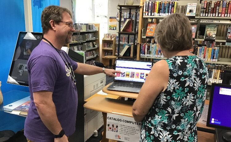 Clyde Waltenbaugh demonstrating how to use one of KDL’s public computers.