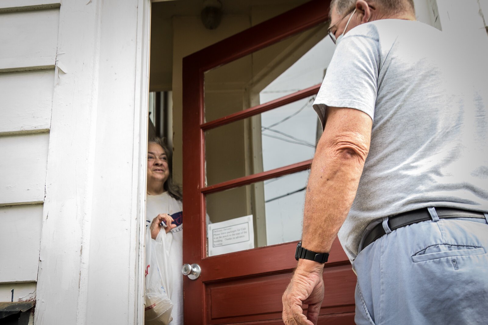 Instead of bringing meals into the homes, the volunteers leave them near the door and call out to the client, wave to them, or call them on the phone to make sure they are doing well.