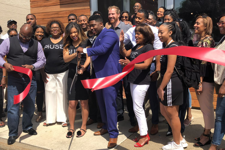 For the past 50 years, the building at 727 Leonard St NW housed a windowless, closed-off adult bookstore, of which its neighboring community was not a fan. However, over the past year, the building was purchased, renovated, and transformed into an interactive art gallery, now known as Muse GR, by Stephen Smith, who owns photography company Executive Visions and works in Grand Rapids Public Schools, and Taylor Smith, writer for the marketing and communications team of World Renew. The ribbon cutting was held on Friday, May 18th at 12pm.