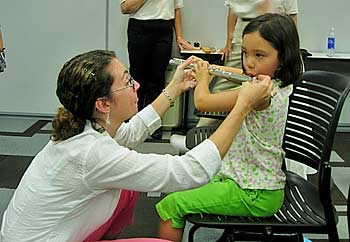 Teaching flute during kids’ classes (photo by Martha Cudlipp)