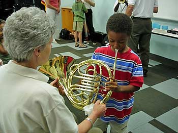 Teaching french horn (photo by Martha Cudlipp)