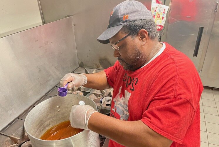 And cooking is still a family endeavor, Capers says. He and his wife are always working on various aspects of the business, plus six of their kids who live in the area help, and bring their kids.
