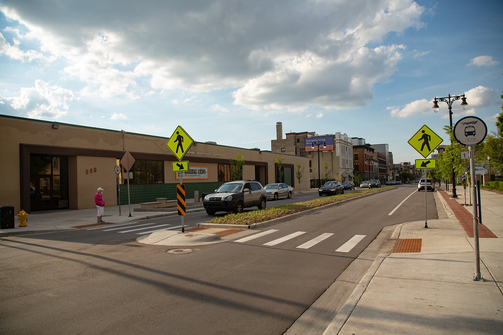 With its population and economy booming, Grand Rapids’ infrastructure is bursting at the seams. The growth has led to city planning and infrastructure changes to roads and walkways. Roads like Bridge Street and College Avenue have been split from two lanes to one to create room for a left turning lane as well as bike lane, condensing the roads with new traffic patterns. Pedestrians have an equally confusing path to navigate.