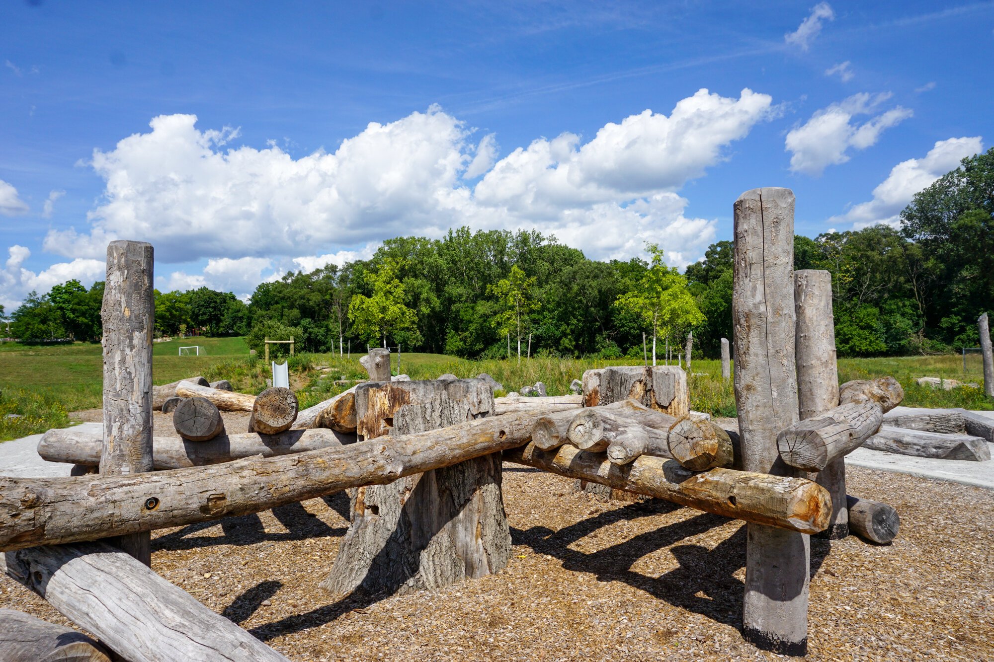 “The design was done with the input of student and youth voices. First, we engaged with half a dozen students in the process. We put them together with the design consultant. And students led the [design] evaluation — we looked at 1,411 student surveys,” Marquardt says. “From the sustainability aspect, the play spaces are built with old tree limbs, logs, and stumps that the Parks department Forestry Division would have ground up for mulch.”