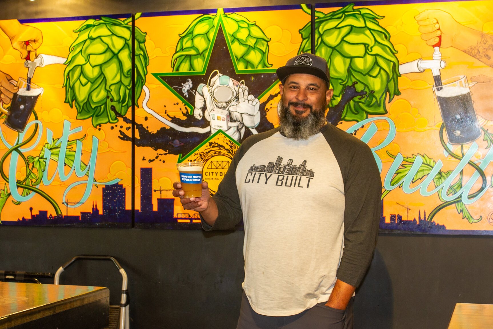Chris Andrus of The Mitten Brewing holding This Pizza is Safe campaign